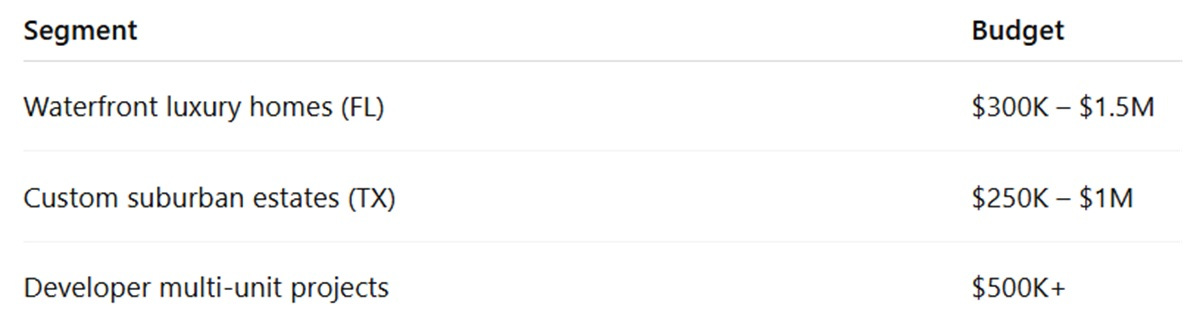 Typical residential projects: $50K–$250K.